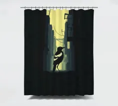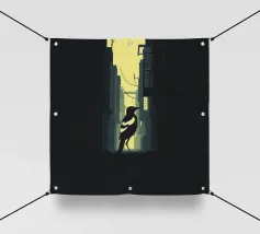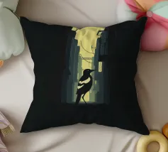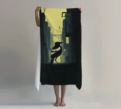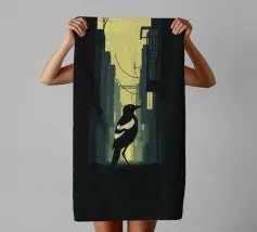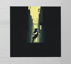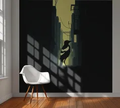 In un vicolo poco illuminato, un uccello si trova da solo, stagliato contro il tenue bagliore giallo dello sfondo, evidenziando la tranquilla bellezza della solitudine urbana.