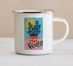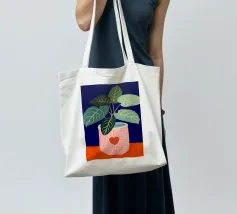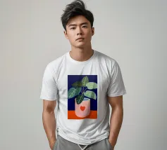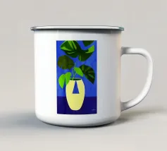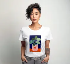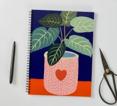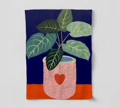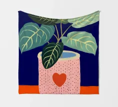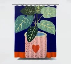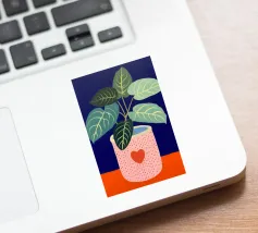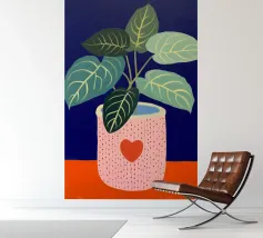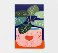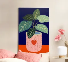 La rappresentazione creativa di una pianta d'appartamento in un vaso di fiori rosa a pois su sfondo blu incarna l'arte moderna e l'amore per le piante in stile scandinavo. Quest'opera d'arte conferisce bellezza naturale e armonia a qualsiasi arredamento.