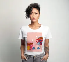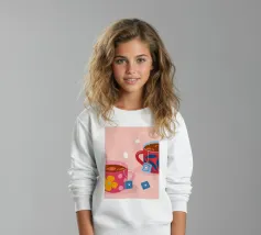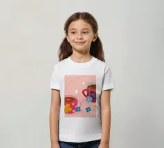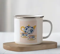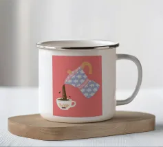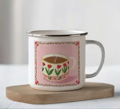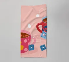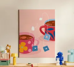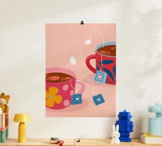 Due accoglienti tazze di tè, ciascuna con un'etichetta a forma di cuore e di fiore. Questa illustrazione dolce e semplice è una calda rappresentazione dell'amore condiviso, dell'amicizia e dei momenti di conforto.