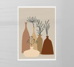 "An abstract botanical art wallpaper features stylized representations of plants and foliage using artistic shapes, flowing lines, and modern color palettes. Rather than realistic depictions, the desig"