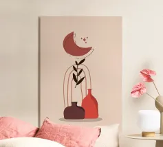 "An abstract botanical art wallpaper features stylized representations of plants and foliage using artistic shapes, flowing lines, and modern color palettes. Rather than realistic depictions, the desig"