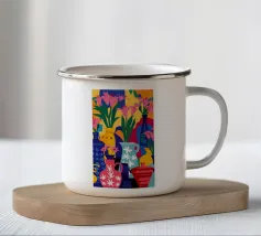 "An abstract botanical art wallpaper features stylized representations of plants and foliage using artistic shapes, flowing lines, and modern color palettes. Rather than realistic depictions, the desig"