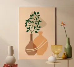 "An abstract botanical art wallpaper features stylized representations of plants and foliage using artistic shapes, flowing lines, and modern color palettes. Rather than realistic depictions, the desig"
