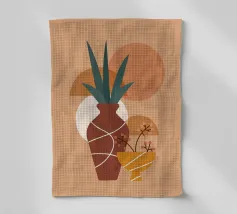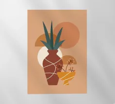 "An abstract botanical art wallpaper features stylized representations of plants and foliage using artistic shapes, flowing lines, and modern color palettes. Rather than realistic depictions, the desig"