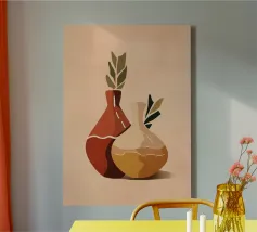 "An abstract botanical art wallpaper features stylized representations of plants and foliage using artistic shapes, flowing lines, and modern color palettes. Rather than realistic depictions, the desig"