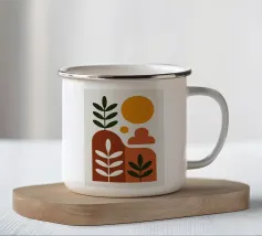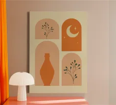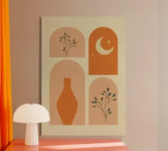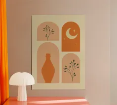 "An abstract botanical art wallpaper features stylized representations of plants and foliage using artistic shapes, flowing lines, and modern color palettes. Rather than realistic depictions, the desig"