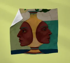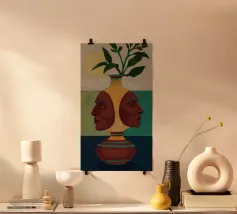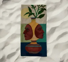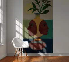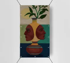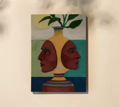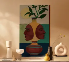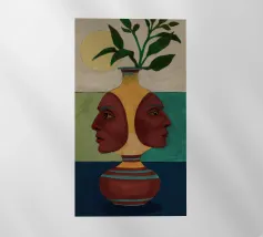 Una surreale e artistica natura morta di un vaso formato dai profili di due volti. L'opera è un'esplorazione riflessiva, moderna e fantasiosa del legame, dell'identità e dell'arte.