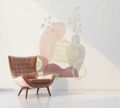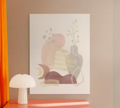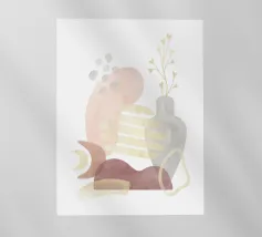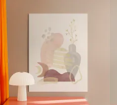Un design moderno che combina un vaso astratto con forme morbide e organiche e sottili accenti botanici. La morbida palette di colori caldi e pastello crea un'atmosfera rilassata e senza tempo che si adatta perfettamente agli stili di interni minimalisti e moderni. Ideale per murales, cuscini, tazze o cover per cellulari, questo motivo dona leggerezza ed eleganza artistica a qualsiasi ambiente. Perfetto per gli amanti dell'arredamento boho e dell'arte contemporanea.