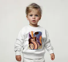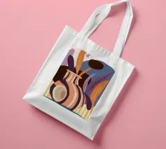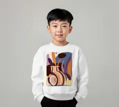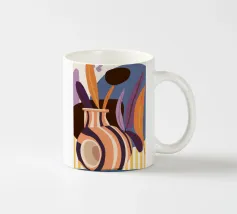 Un dipinto moderno e astratto di un vaso decorativo con motivi vorticosi e colorati. Le forme fluide e i colori vivaci creano un senso di movimento dinamico e di energia artistica.