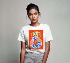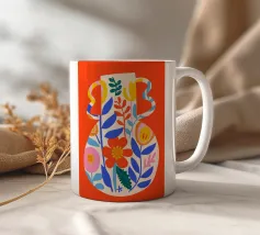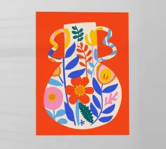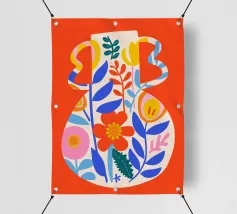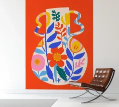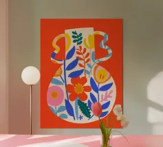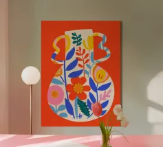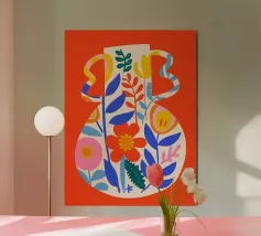 Questo disegno unico mostra un vaso stilizzato pieno di fiori colorati in colori vivaci come il blu, il rosso, il giallo e il rosa, su uno sfondo rosso vivo. L'armonioso mix di forme moderne e colori allegri rende questo motivo un vero e proprio richiamo visivo. Perfetto per murales, cuscini, tazze, cover per cellulari e altro ancora, questo disegno dona freschezza ed eleganza a qualsiasi ambiente. Ideale per gli amanti dell'arte che apprezzano i motivi floreali senza tempo con un'estetica moderna.