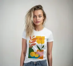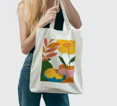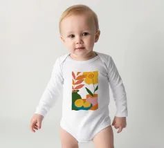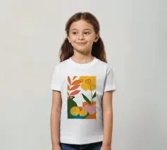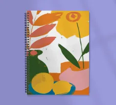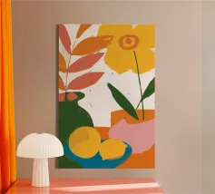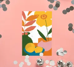 Limoni dai colori vivaci e forme floreali astratte si alternano in una giocosa composizione di natura morta piena di allegria estiva.