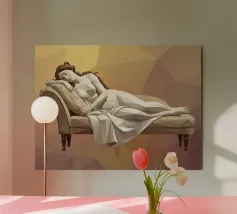 "Venere che dorme sul divano" (stile Lowpoly), ispirazione da un dipinto di Johann Baptist von Lampi il Giovane del 1826.