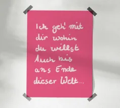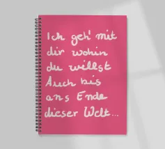 Questo motivo grafico tipografico minimale presenta il testo di una canzone scritto a mano "I'll go with you wherever you want" in rosa tenue su sfondo rosa. Il moderno disegno a mano crea un'atmosfera personale ed emotiva ed è perfetto come decorazione murale per qualsiasi stanza.