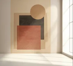 Questo dipinto digitale combina le calde tonalità della terra con forti forme geometriche. La sua composizione equilibrata è perfetta come opera d'arte da parete sopra un divano, una credenza o in un elegante spazio di lavoro.
