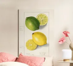 Limoni e lime riccamente dettagliati in un classico stile botanico su una calda carta non patinata conferiscono a questo motivo un aspetto elegante e senza tempo. Le ombreggiature sottili, i colori naturali e l'estetica scientifica ricordano le illustrazioni storiche di piante, ma hanno un'impronta moderna. Perfetto per murales, tazze, cover per cellulari, cuscini, tende da doccia e T-shirt. Ideale per la decorazione della cucina, l'arte botanica da parete, i poster di limoni vintage, le illustrazioni di frutta naturale, gli accessori per la casa mediterranei, le idee regalo per gli amanti del design e gli ambienti tranquilli ed eleganti.