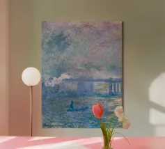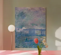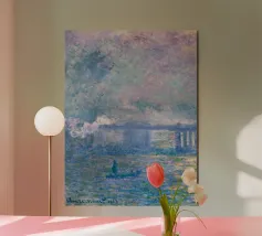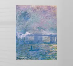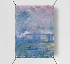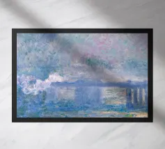 Ponte di Charing Cross blu porpora, ponte nebbioso romantico Stampa