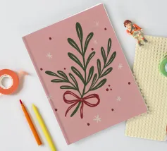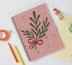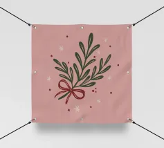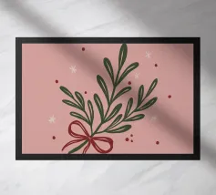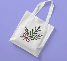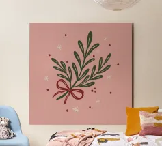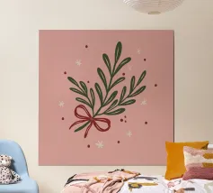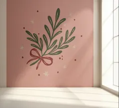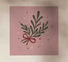 Simpatica illustrazione botanica natalizia di un ramo di vischio con fiocco a civetta.