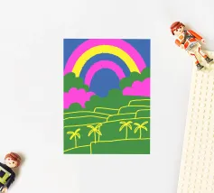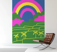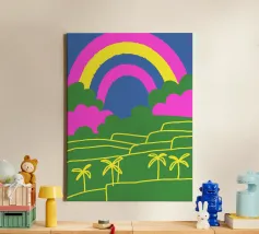 Catturate la straordinaria bellezza dell'arcobaleno! Questo disegno presenta una splendida scena di arcobaleno, ricca di colori e dettagli, che evoca sentimenti di pace e felicità.