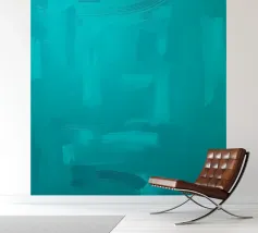 Un'opera d'arte astratta di colore turchese vibrante mostra una serie di pennellate e texture, creando un'atmosfera rilassante e sofisticata adatta agli spazi contemporanei.