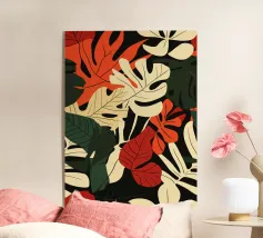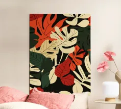 Un'audace e vibrante opera d'arte con fogliame tropicale ispirata allo stile iconico di Matisse, progettata come modello senza cuciture da stampare su prodotti come abbigliamento, poster, decorazioni per la casa e accessori, perfetta per aggiungere un'atmosfera tropicale colorata e artistica ai vostri articoli con questo design unico e accattivante!