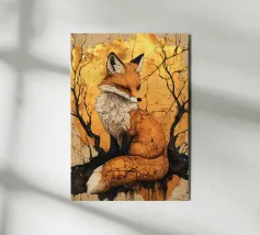 In questo dipinto espressivo, una volpe calma e di colore marrone rossiccio siede su uno sfondo di rami dorati e texture screpolate. La composizione combina l'eleganza dell'animale con una tavolozza di colori caldi e autunnali e una profondità artistica. Ideale per gli amanti della natura, della foresta e dell'arte che apprezzano gli animali in pose calme e riflessive. Questo motivo è perfetto per salotti accoglienti, uffici o spazi di lavoro creativi. Parla di tranquillità, intuizione e della bellezza di ritirarsi nella natura.