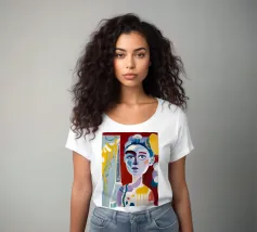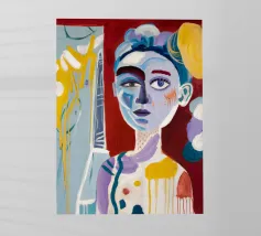 Quest'opera d'arte raffigura un volto astratto composto da varie forme e colori. L'uso di tinte vivaci e di forme dinamiche conferisce al dipinto una qualità ludica ed espressiva.