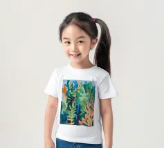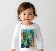 Audaci forme frondose danzano in un'astrazione ritmica, mescolando motivi forestali con moderne esplosioni di colore nel caos della natura.