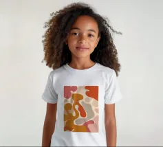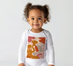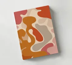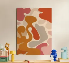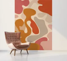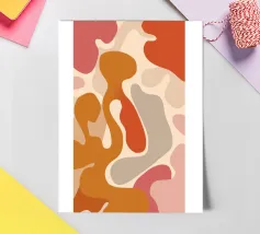 Un'opera d'arte astratta con forme morbide e vorticose in una calda tavolozza di caramello, marrone e crema. Le forme fluide e organiche creano una composizione delicata e fluida, rilassante e sofisticata.