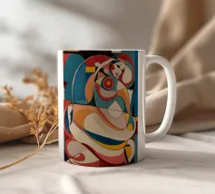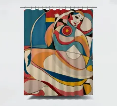 Questo dipinto mostra una figura astratta in una posa dinamica, circondata da colori vivaci e forme geometriche. L'uso di rossi, blu e gialli intensi crea un senso di movimento ed energia. La composizione è complessa e coinvolgente e attira l'attenzione dello spettatore sui vari elementi dell'opera.