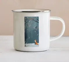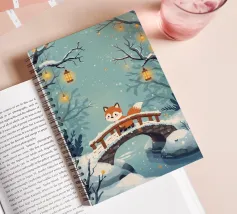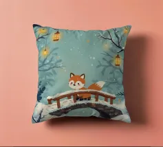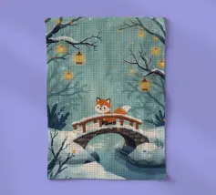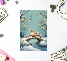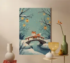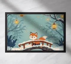 Voxy si trova su un incantevole ponte di legno circondato da lanterne luminose e dalla neve che cade dolcemente. Una magica foresta invernale dà vita alla scena, rendendola un'incantevole scelta per le stampe festive.