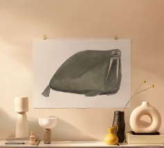 Illustrazione disegnata a mano di un tricheco su sfondo trasparente, perfetta per essere integrata in tutte le superfici in tessuto colorato.