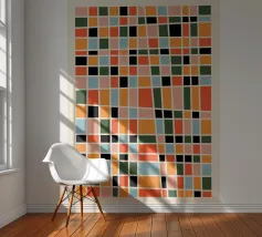 Il design geometrico Warm Happy ravviva la vostra casa con le vibranti tonalità dell'arancione, del verde e del giallo senape. Questo giocoso disegno retrò combina forme astratte colorate con un'atmosfera allegra, rendendolo perfetto per interni boho, eclettici o moderni. Aggiungete un'esplosione di gioia, energia e creatività alle vostre pareti con questo motivo audace e vivace.