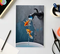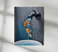 "Faucet spits goldfish" è un'opera d'arte digitale in computer grafica giocosa. Invece di gocce d'acqua che sgorgano da un rubinetto luccicante, dal ruscello emergono, in modo vivace e sorprendente, pesci rossi luminosi. La scena combina umorismo, fantasia e precisa rappresentazione digitale. Linee chiare, colori brillanti e riflessi dettagliati conferiscono all'immagine un'atmosfera surreale e fiabesca. "Il rubinetto sputa pesci rossi" dimostra come l'arte digitale superi i confini del quotidiano con idee creative.