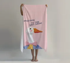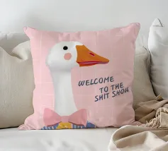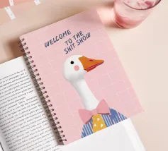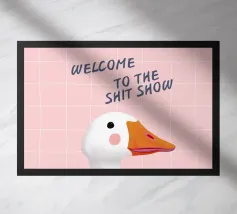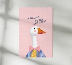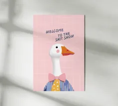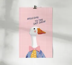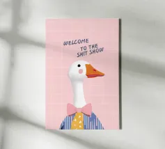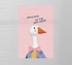 Un'oca in papillon pronuncia la frase "Welcome to the sh*t show" con impeccabile compostezza. Un'illustrazione pulita e moderna incontra un umorismo sfacciato: perfetto per chiunque apprezzi un po' di sarcasmo nel proprio stile. Giocoso, audace e di buon umore, questo pezzo conferisce personalità a qualsiasi spazio.