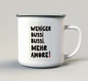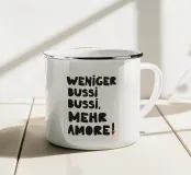 Chiaro, diretto e con il cuore: "Meno Bussi Bussi, più Amore!". - una dichiarazione che mette l'amore al di sopra della superficialità. L'audace tipografia nera su sfondo chiaro sembra un richiamo all'autenticità, mentre il piccolo cuore rosso dà il tono. Umoristico, sorprendente ed emotivo allo stesso tempo: un poster che mostra attitudine e che attira l'attenzione in ogni stanza.
