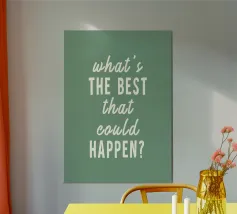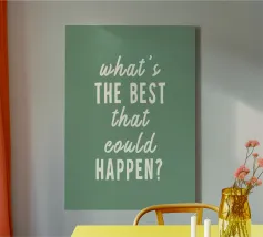 Un disegno edificante e fantasioso. La frase è "What's the Best That Could Happen?". L'opera cattura un senso di speranza, meraviglia e possibilità, invitando gli spettatori a sognare in grande e ad abbracciare l'ignoto con ottimismo.