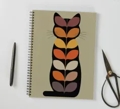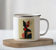Elegante poster di gatto retrò dal design moderno di metà secolo. L'illustrazione geometrica astratta in colori caldi è un vero e proprio richiamo visivo e porta il fascino vintage in ogni casa. Perfetto come decorazione murale per gli amanti dei gatti e per i fan dell'arte minimalista, sia in soggiorno che in camera da letto o in ufficio.