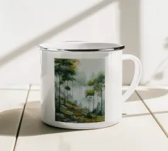 Entrate nella calma e nella meraviglia con "Whispering Pines - Path Through the Forest". Questa opera d'arte pacifica cattura una scena di bosco nebbiosa, dove alti pini fanno da guardia a un sentiero tranquillo costeggiato da erba soffice e fiori selvatici. I toni tenui e la luce sognante evocano sentimenti di serenità, consapevolezza e fuga nella natura.