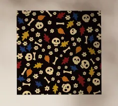 Catturate la magia della stagione con Whispers of Autumn in una seconda variante. Caratterizzato da teschi, ossa, foglie autunnali e fiori, questo disegno offre un delicato mix di eleganza spettrale e bellezza stravagante, perfetto per gli amanti dell'autunno che amano un sottile tocco gotico.