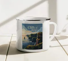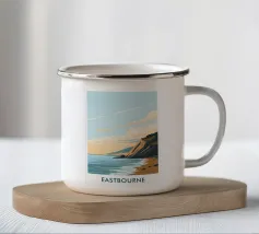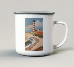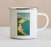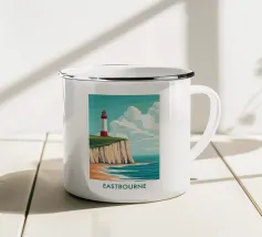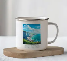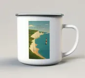 Design di viaggio minimalista dell'Inghilterra meridionale con le famose scogliere bianche (chalk cliffs) e il faro sulla costa inglese vicino a Dover. Tipico paesaggio di scogliere chiare.