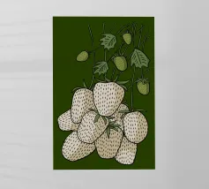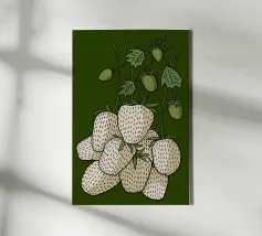 White Strawberry mette in mostra il fascino delicato della primavera con fragole bianche splendidamente illustrate. Un design perfetto per gli amanti della frutta e delle fragole!