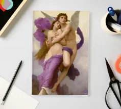 Volate in cielo con Il rapimento di Psiche di William-Adolphe Bouguereau. Questo capolavoro del 1895 cattura la mitica storia d'amore di Amore e Psiche con grazia, emozione e luminosa bellezza. Una straordinaria celebrazione dell'amore, della tenerezza e dell'elevazione divina, che rimane una delle opere più iconiche e amate di Bouguereau, ideale per i collezionisti di arte romantica classica.