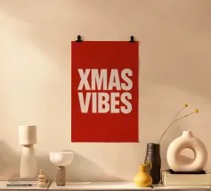 Una stampa natalizia moderna e sorprendente, caratterizzata da un'audace tipografia invernale su un festoso sfondo rosso. Pulita, grafica e piena di carattere, perfetta per aggiungere energia stagionale a qualsiasi parete.