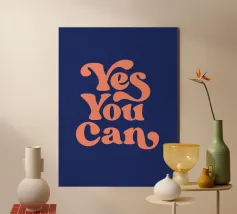 Accendete il vostro fuoco interiore con la nostra stampa tipografica dinamica "Yes You Can". Questo messaggio di forza prende vita con un'audace scritta arancione in corsivo, creando un contrasto sorprendente con uno sfondo blu scuro. Il design di ispirazione vintage emana fiducia ed energia, perfetto per uffici, palestre o qualsiasi altro spazio che necessiti di una spinta di positività. L'estetica retrò aggiunge un tocco di nostalgia e trasmette un messaggio senza tempo di fiducia in se stessi. Disponibile su diversi prodotti, questa accattivante opera d'arte serve a ricordare ogni giorno il vostro potenziale e la vostra forza. Lasciatevi ispirare da questa vivace stampa!