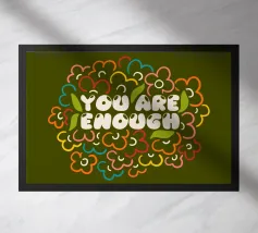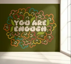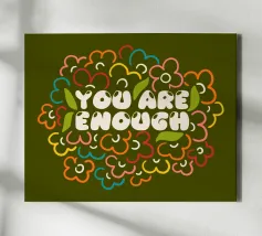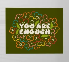Tutti noi a volte abbiamo la sensazione di non essere abbastanza bravi, chi più chi meno, ma la verità è che siamo perfettamente sufficienti così come siamo. Siamo nati perfetti e il resto sono solo abilità che dobbiamo sviluppare nel corso della nostra vita. Tipografia floreale con messaggio positivo.