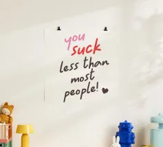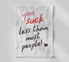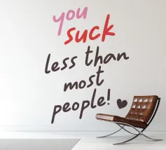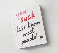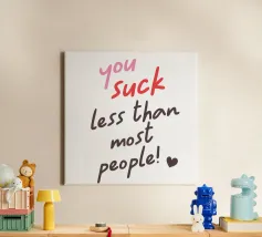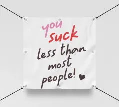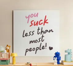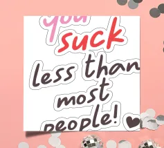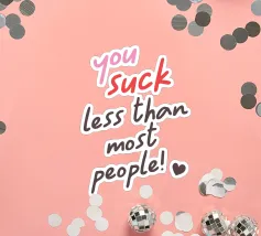Un messaggio scherzoso e umoristico è scritto in un testo colorato che termina con il simbolo di un piccolo cuore. Trasmette un complimento spensierato e sarcastico con un tono informale.
