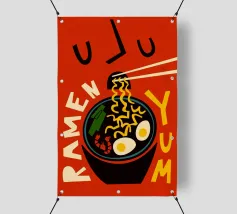 Questa vivace stampa ramen aggiunge un tocco giocoso e audace a qualsiasi spazio. Caratterizzato da un sorprendente sfondo rosso e da un divertente disegno astratto di una ciotola di ramen completa di noodles, uova e gamberetti, questo poster è perfetto per gli amanti del cibo e della cucina giapponese. I colori vivaci e l'eccentrica tipografia lo rendono un complemento ideale per cucine, sale da pranzo o ristoranti. Che siate appassionati di ramen o semplicemente alla ricerca di un'arte da parete unica, questa stampa apporta energia e creatività al vostro arredamento. Disponibile in varie dimensioni per adattarsi al vostro spazio.