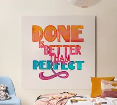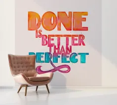 Un bel detto sul tema della perfezione. Aver fatto e finito qualcosa è molto meglio che pretendere di averlo fatto perfettamente. Per quanto riguarda il design: una vera e propria firma di CalliLetters - colorata, scritta a mano, espressiva, allegra. Un bellissimo disegno di lettere a mano in stile acquerello con texture acquerellate e spruzzi di colore.