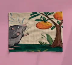 Questa opera d'arte raffigura una nuvola dall'aspetto scontroso con una bolla di pensiero contenente un uccello e un orso. La scena, umoristica e fantasiosa, è ambientata su un morbido sfondo blu.