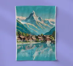Swiss Alps Village Mountain Lake Scene